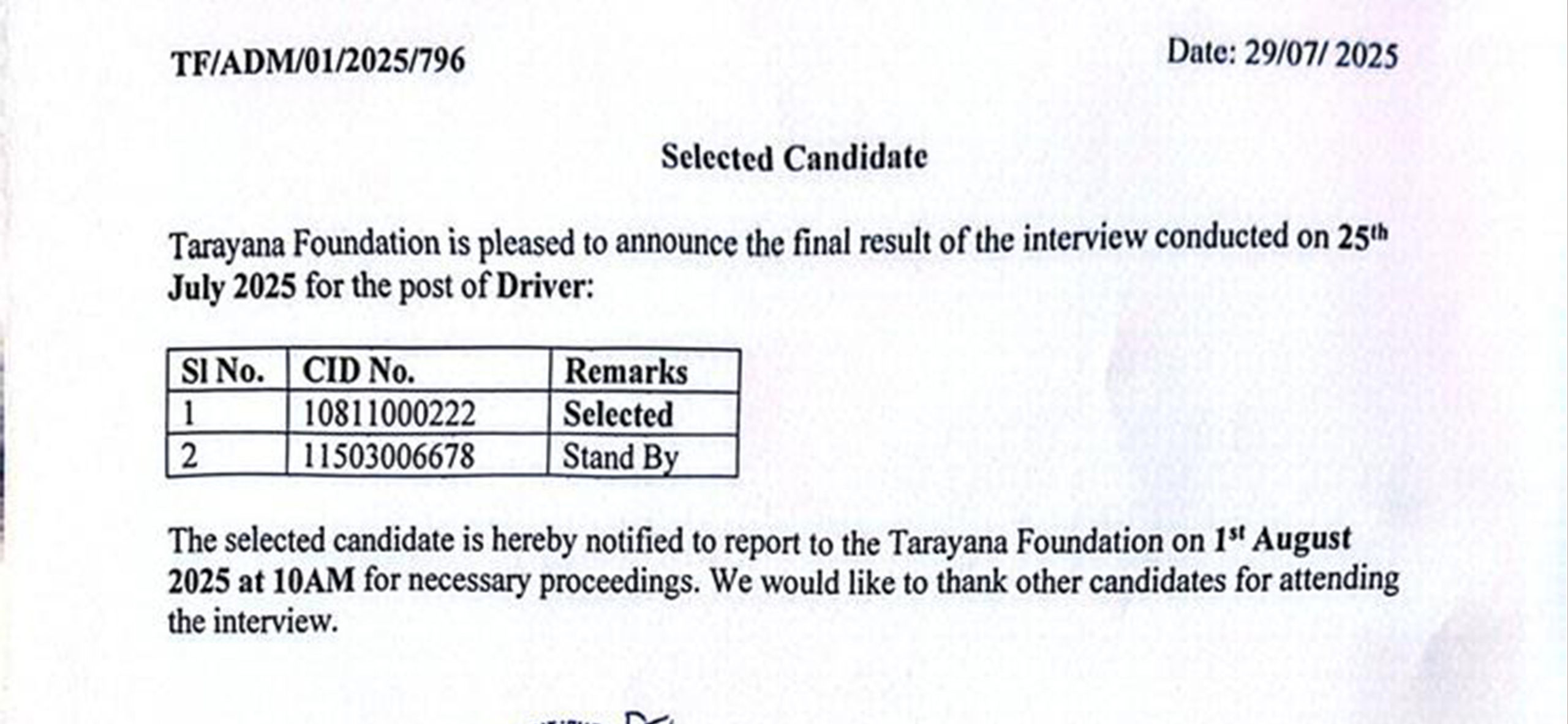 𝐑𝐞𝐬𝐮𝐥𝐭 𝐟𝐨𝐫 𝐭𝐡𝐞 𝐏𝐨𝐬𝐭 𝐨𝐟 𝐃𝐫𝐢𝐯𝐞𝐫