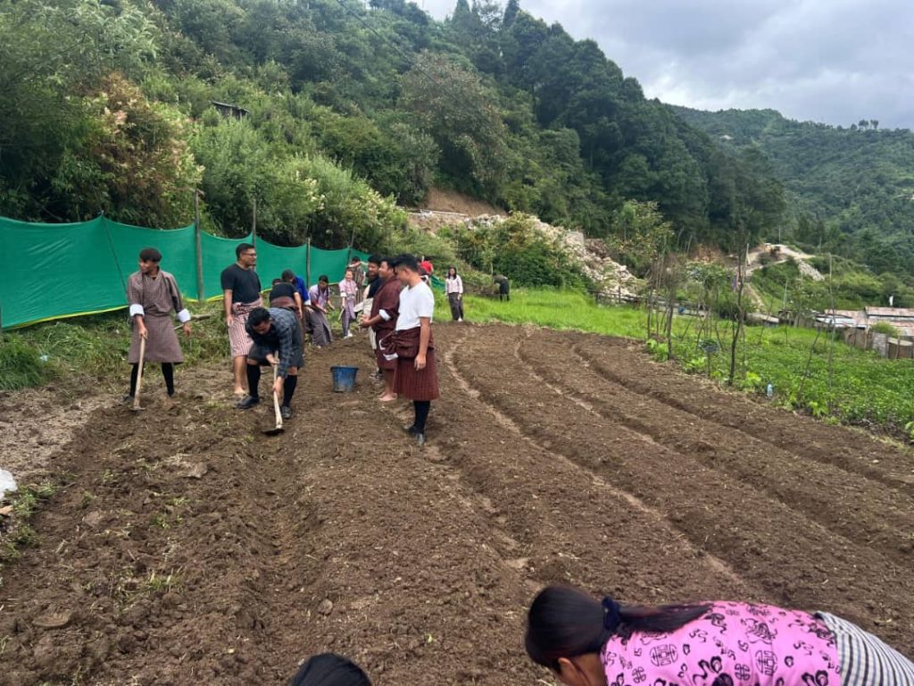 As part of the Building Resilient Commercial Smallholder Agriculture-BRECSA (BRECSA) project, the first of 25 targeted Model Nutrition Gardens has been successfully developed in Nubi Gewog, Trongsa. The pilot site was identified at the residence of Ms. Chozom, who lives with her younger sister and brother, all three of whom are speech-impaired but actively engaged in agriculture and dairy farming.
