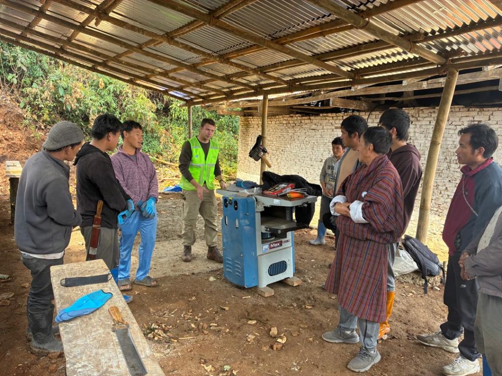 At Tshogonpa in Lumang Trashigang, a hands-on training on climate-resilient construction is currently underway, led by our volunteer architect Mr. Matej Vacek. A total of 17 carpenters and masons from six chewogs of Lumang Gewog are actively participating.