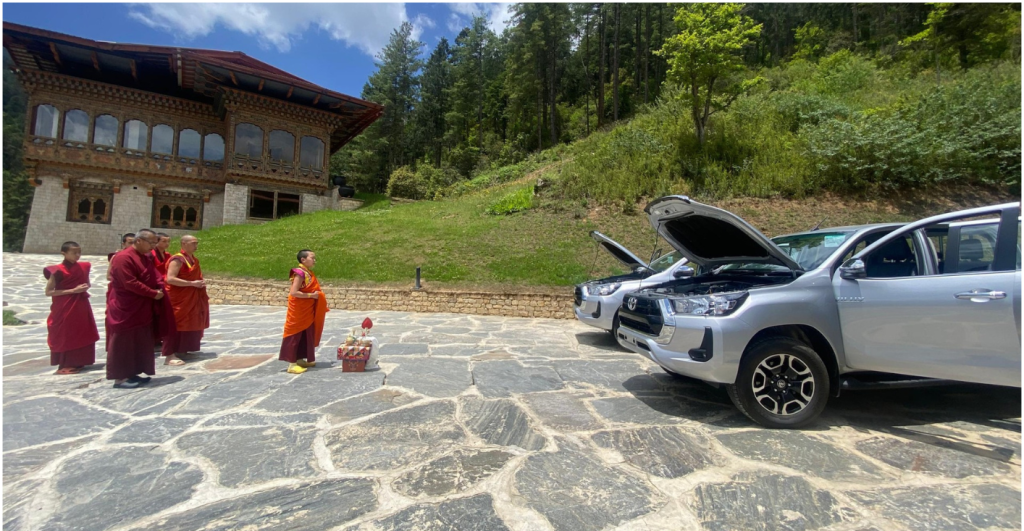 With the generous support from the German Federal Ministry for Environment, Nature Conservation, Nuclear Safety and Consumer Protection (BMUV) and the International Climate Initiative (IKI) through the project Living Landscape: Securing High Conservation Values in South Western Bhutan, the Tarayana Foundation received two new Toyota Hiluxes.